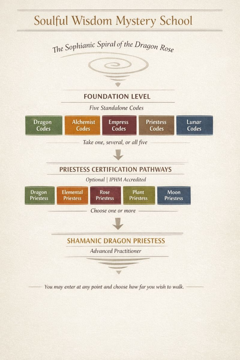 This advanced certification is accredited by the International Practitioners of Holistic Medicine (IPHM) and represents the full embodiment of the Sophianic Spiral of the Dragon Rose.